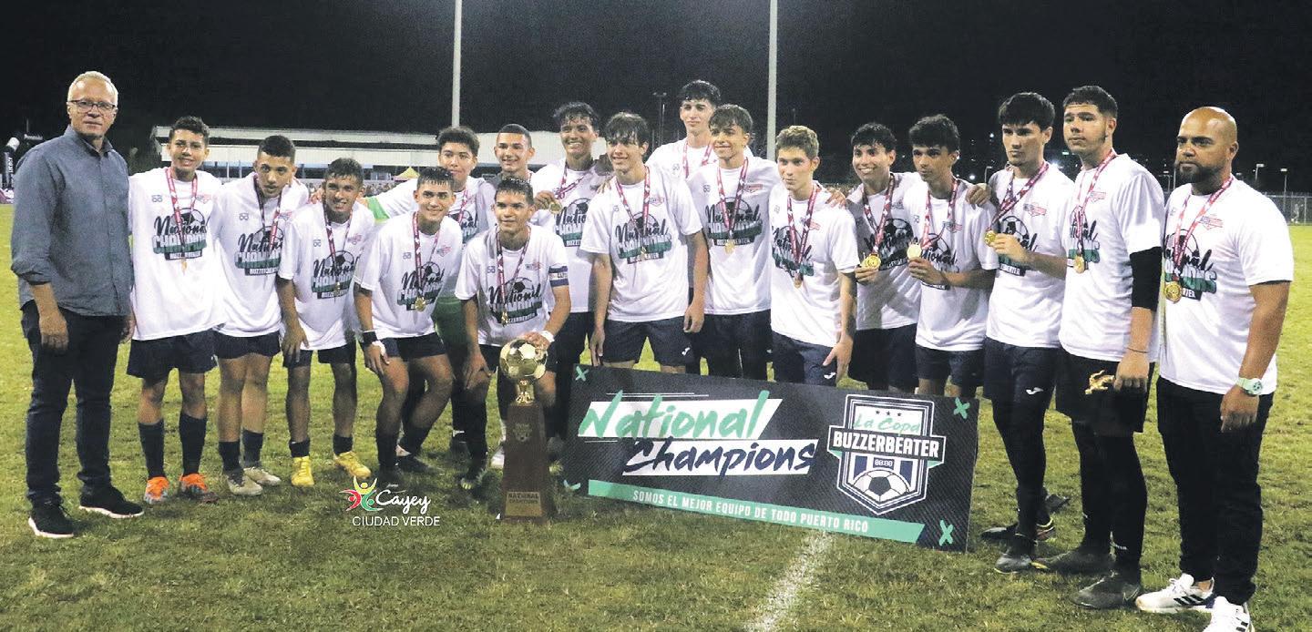 noche del martes 2 de mayo de 2023. Esto, luego de derrotar al aguerrido conjunto del Colegio Saint John’s de San Juan, 1-0. La final hace historia al ser el primer partido de fútbol escolar al ser transmitido en directo por televisión nacional. Desde el Primer Tiempo de la final en el Complejo de Fútbol de Cayey de la Primera Copa Buzzer Beater, era notable la tenden-