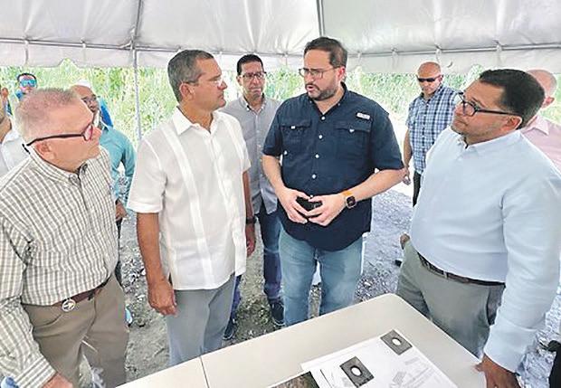En el área del proyecto de la PR-203, el director ejecutivo de la Autoridad de Carreteras y Transportación (ACT), Edwin Gonzalez, le explica al gobernador Pedro Pierluisi los avances del mismo. Observan el representante a la Cámara José Aponte Hernández y el alcalde Jaime Alverio Ramos.
