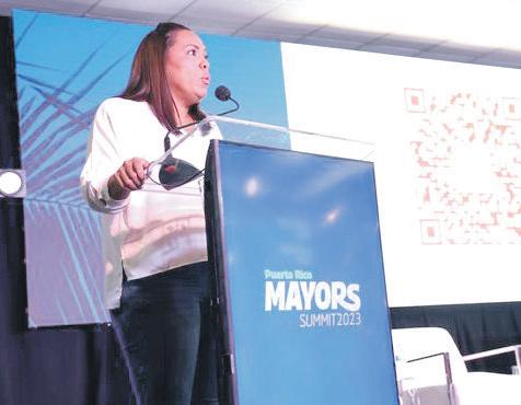 La alcaldesa de Gurabo, Rosachely Rivera Santana junto a la directora de La Liga de Ciudades, Cristina Miranda, presentó el programa Bandera Violeta para la prevención de violencia de género ante sus compañeros de la Federación de Alcaldes, durante el Puerto Rico Mayor Summit 2023. Con su participación en esta actividad, celebrada en Guayanilla el pasado fin de semana, la alcaldesa se incorporó al trabajo presencial, luego de un quebranto de salud que la mantuvo hospitalizada unos días en junio pasado y luego trabajando desde su hogar.