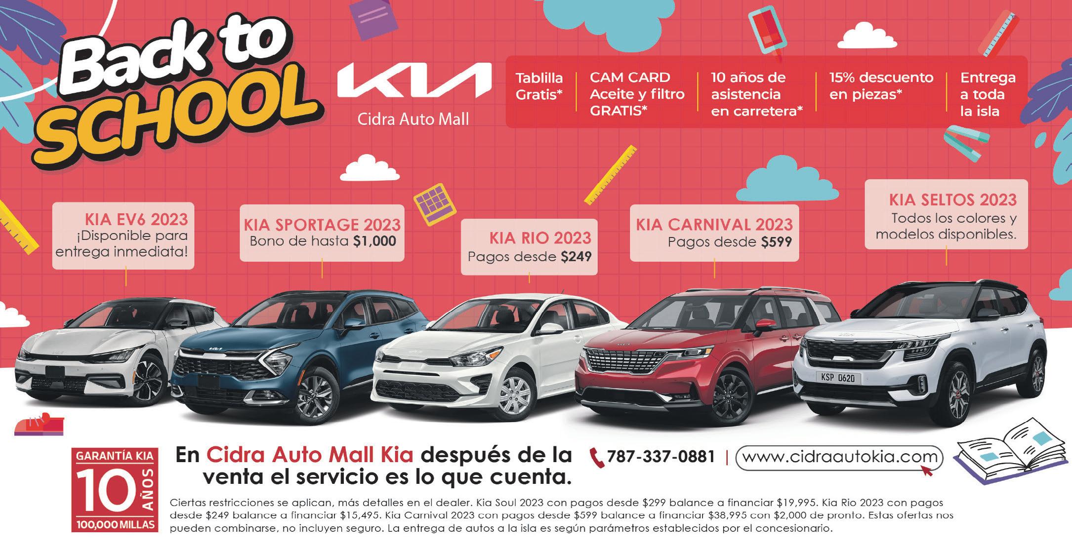 6 EDITORIAL SEMANA, INC • Jueves, 10 de agosto de 2023 ABIERTOS LUNES A SÁBADO: 7AM-6PM •OFERTAS VÁLIDAS DEL 10 AL 16 DE AGOSTO DE 2023. Bayamón (787) 395-7896 Santa Rosa Shopping Mall (787) 995-7868 Carr. #2, Reparto Industrial Correa Caguas (787) 230-6068 Bo. Bairoa Carr. #1 Detrás de EcoMaxx. Guaynabo (787) 705-7628 Los Jardines Shopping Center (787) 276-7868 Ave. Magnolia K22, (Antiguo Frankie Auto Service) 787.737.7868 shop.2965@meineke.net Barrio Las Flores Carr. 941 KM 1.0 Gurabo (Antiguo: Gurabo Car Care) ¡Ya estamos Gurabo!en Especial de Gomas Nuevas TAMAÑO PRECIO TAMAÑO PRECIO 175/70R13 $49.99 c/u 215/70R16 $89.99 c/u 185/65R14 $54.99 c/u 215/55R17 $89.99 c/u 185/60R15 $59.99 c/u 235/70R16 $99.99 c/u 185/65R15 $59.99 c/u 225/65R17 $99.99 c/u 195/65R15 $64.99 c/u 235/65R17 $109.99 c/u 205/55R16 $64.99 c/u 245/65R17 $109.99 c/u 205/60R16 $69.99 c/u 265/70R17 $129.99 c/u ¡MONTURA GRATIS! Precio ilustrado es por cada goma. No Incluye IVU. 0%Obtén de Interés hasta 12 meses Incluye hasta 5 qt., filtro reemplazo y labor. Filtro original disponible con costo adicional. Más detalles en la tienda. Sintético $4999 Básico $2999 Cambio de Aceite y Filtro Detalles en la tienda. Sujeto aprobación de crédito. ¡Solicítala HOY! Alineamiento Oferta desde Garantía de 6 meses o 6,000 millas Precio regular desde $59.99. $3999