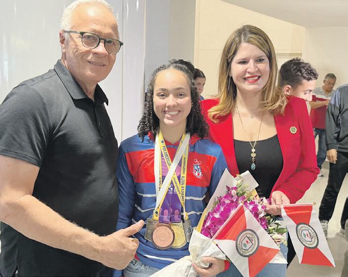 El alcalde Rolando Ortiz Velázquez y la representante Gretchen Hau fueron parte del entusiasta recibimiento. “Hoy celebramos con esta familia el logro de una de las estudiantes que han puesto alma, vida y corazón en su labor deportiva. Este es sin duda la continuación de una larga carrera deportiva para Cayey y para Puerto Rico”.
