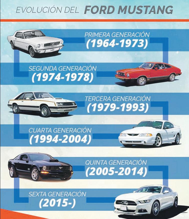 El Mustang sufrió varias transformaciones a su sexta generación actual, siendo la tercera saga de Ford más antigua.