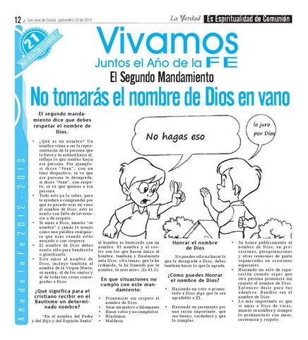 No tomarás el nombre de Dios en vano El segundo mandamiento dice que debes respetar el nombre de Dios.
