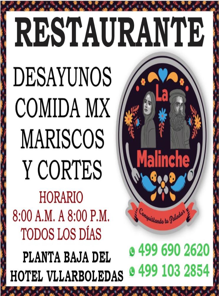 ·Camarones ·SopadeMariscos ·PescadoDorado ·Fileteempanizado ·Empapelado algusto Másde100platillosparadisfrutarconsufamilia!! Del Mar a su Paladar!! Cel.4991055854 Visítenosen VillanuevayelChique ESPECIALIDADES: *ChuletaElPatrón *HamburguesaCarreta *Alitas *CarneAsada *ArracheraElMexicano *CarneasadaElChingón (incluyehuevo, bistecysalchichón) Villanueva, Zacatecas Santa Rosa #27 (frente al Restaurant Las Palmas) Servicio a Domicilio 499 103 9667