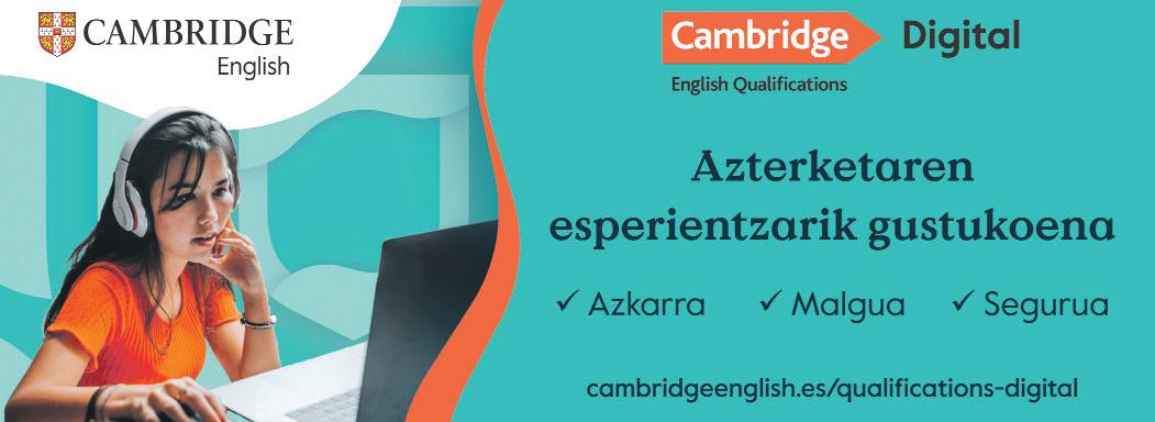 PUBLIZITATEA: Bizkaia/ Gipuzkoa/ Araba/Nafarroa: 629 229 185 Unibertsitateko Aldizkariak ez du bertan azaltzen diren iritzi eta edukien gaineko ardurarik hartzen. LAGUNTZAILEAK EKINTZA HONEK EUSKO JAURLARITZAKO KULTURA ETA HIZKUNTZA POLITIKA SAILEKO LAGUNTZA JASO DU