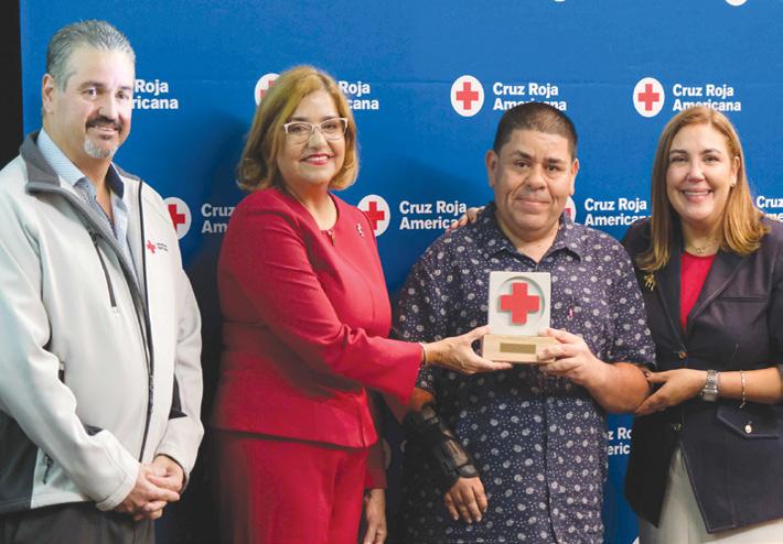 DE IZQ. A DERECHA: SARA ROSARIO VÉLEZ PRESIDENTA DEL COPUR, PROFA. LUCÍA FLORES TORRES, ROBERTO FELICIANO “PANCHO MANAY” Y LUIS ENRIQUE “KIKE” RUIZ TROCHE