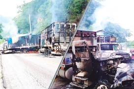 Presuntos integrantes del Cártel de Sinaloa (CDS) quemaron la madrugada de ayer vehículos para bloquear la carretera Motozintla-Mazapa de Madero, en la sierra de Chiapas. Medios locales reportaron que los bloqueos, con tres camiones de carga vandalizados, dificultaron el tránsito vehicular durante horas en el kilómetro 64+900 de la vía, en la región cercana a la frontera con Guatemala.