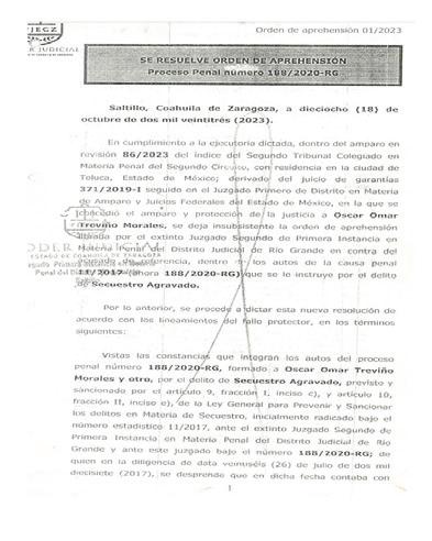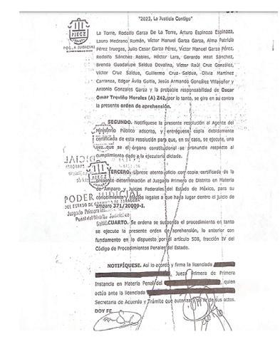 Esta orden de aprehensión tiene causa penal desde el 2017, es la 011/2017 y nunca fue cumplimentada, debido a que las detenciones de Miguel Ángel y Óscar Omar, en territorio de Anáhuac y San Pedro Garza García, Nuevo León, fueron realizadas por las autoridades de seguridad federal, quienes también tenían órdenes en su contra.