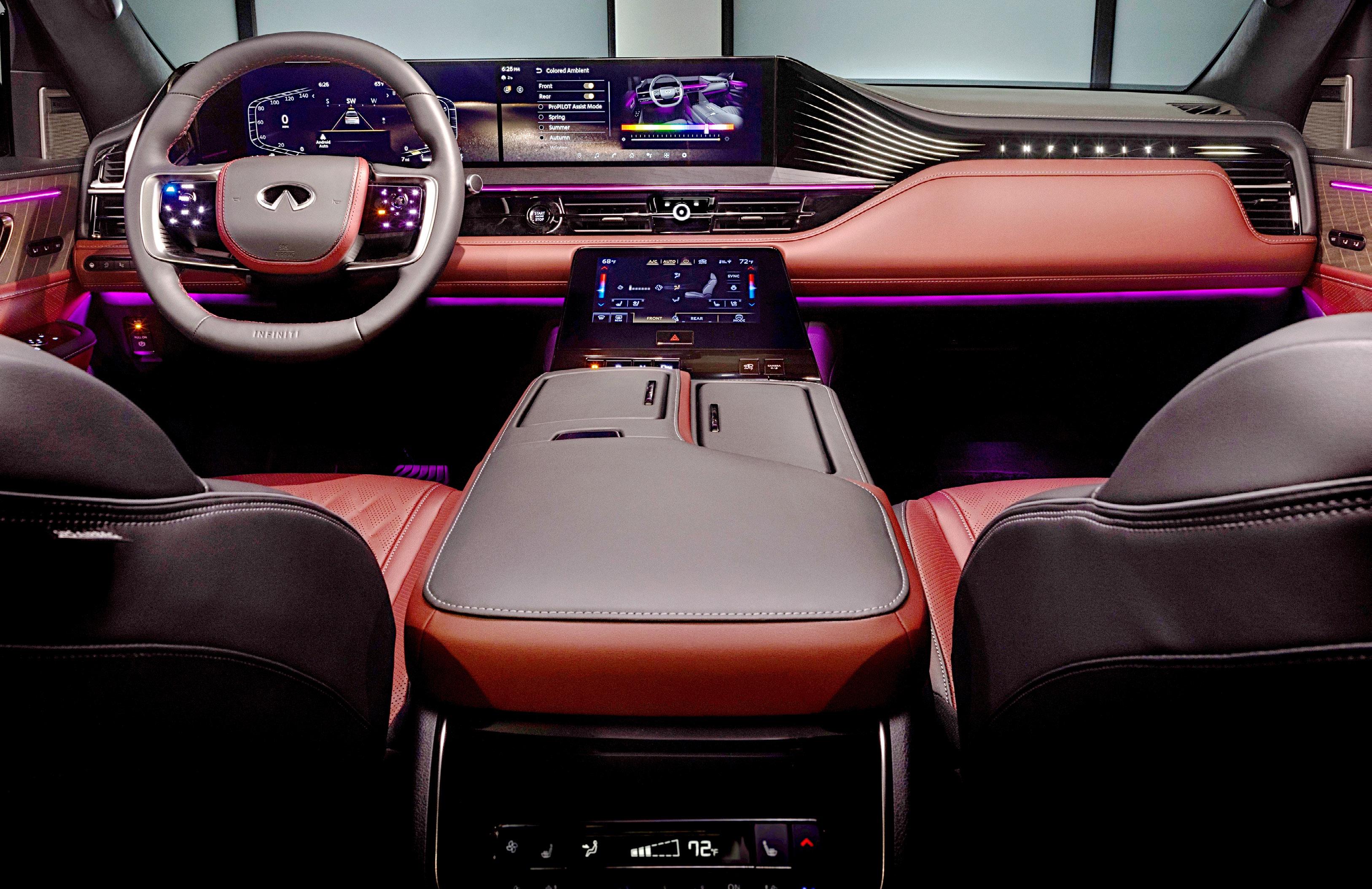 La evolución de la marca Infiniti comienza desde su diseño, que parte del concepto QX Monograph, el cual se caracteriza por sus trazos elegantes, atléticos y de amplio volumen. Infiniti transfiere este nuevo lenguaje de diseño en la nueva generación del modelo QX80. Esta SUV de 5.3 metros de largo ofrece espacios amplios para 7 u 8 pasajeros. La cabina destaca por sus detalles de madera de poro abierto y aluminio que se combinan perfectamente con los asientos forrados en piel genuina.