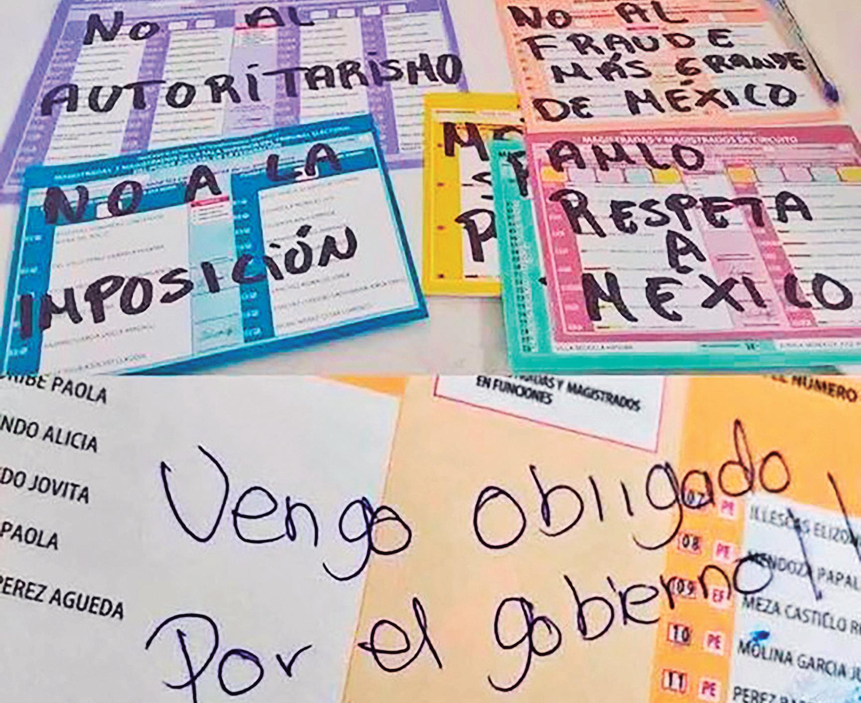 Ante los cálculos de baja participación, desconocimiento de los candidatos y acordeones, ciudadanos anularon votos de la elección judicial con reclamos hacia la actual administración, así como al propio proceso.