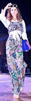 Conocido por su trabajo en el ámbito nacional, Carlín mostró dos grupos de prendas, el primero de ellos en dorado con negro, ideales para la noche, y otro en blanco y azul, que son muy convenientes para ir a las playas cercanas. El título de su pasarela fue Victoria.