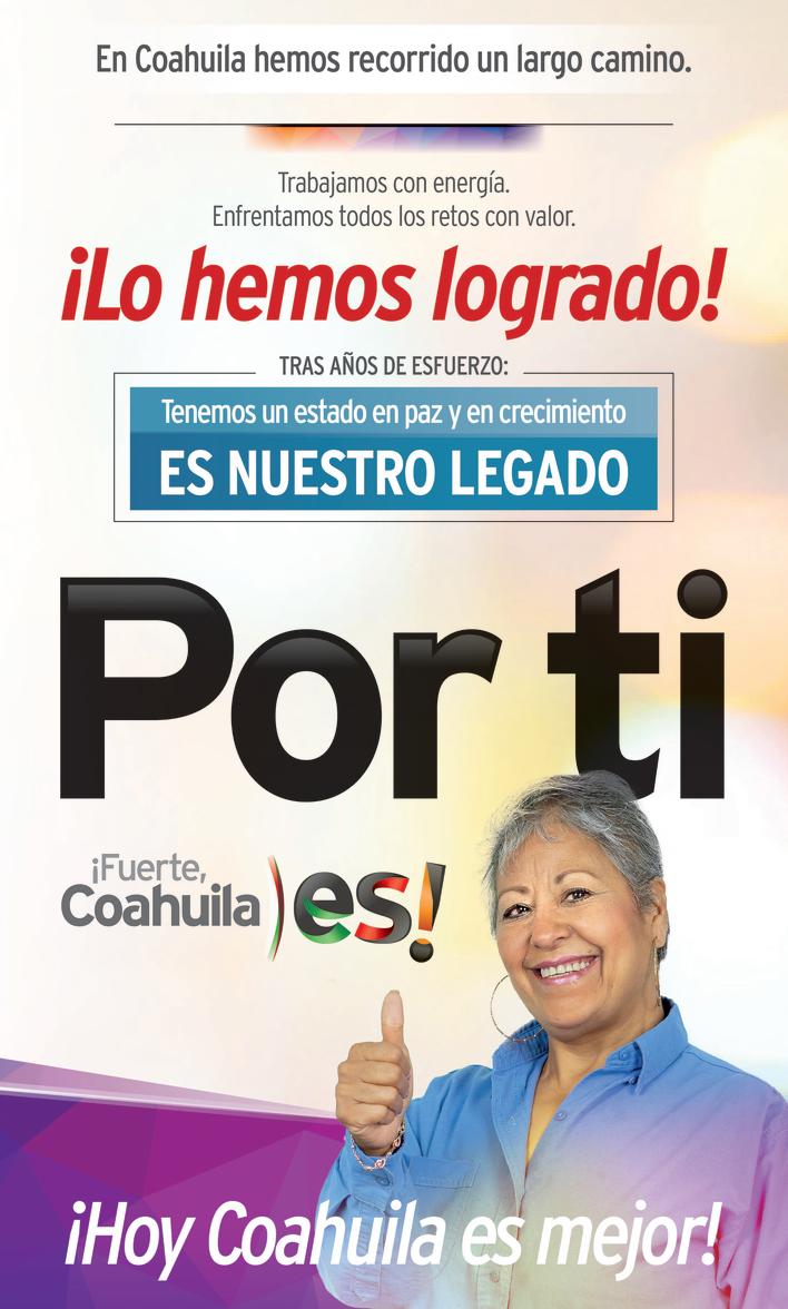 Lunes 4 de septiembre del 2023 | Año XLIX | Número 17,289 | 4 secciones | www.zocalo.com.mx 10 PESOS @PeriodicoZocalo Periodico Zócalo zocaloacuña