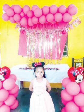 La fiesta de Dayana tuvo como temática “Min nie Mouse” y su madre Gabriela Bosques fue quien organizó esta alegre reunión, la cual fue todo un éxito. Disfrutaron de ricos platillos, postres y diver tidos juegos, así como de un exquisito pastel el cual compartió con los presentes, posteriormente Gabriela junto a su hija agradecieron a sus invita dos por acompañarlos en esta tarde tan especial.