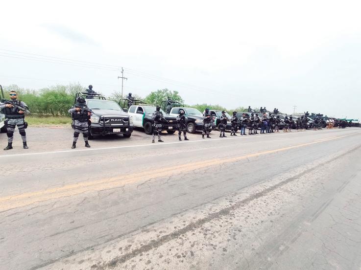 Una veintena de patrullas, vehículos blindados y más de 140 elementos fueron desplegados luego de los enfrentamientos de grupos del crimen organizado Anoche se reportaron en esos límites de Coahuila y Nuevo León grupos de personas armadas que podrían pretender evadir la llegada de 200 ele-