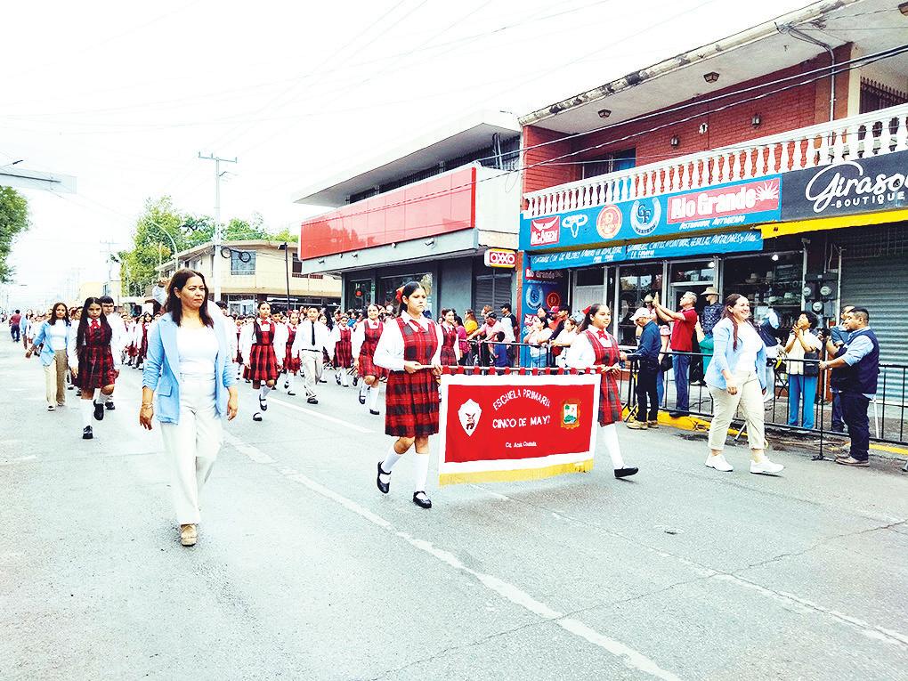 Desfile: z Participan 27 contingentes encabezados por estudiantes de la primaria 5 de Mayo.