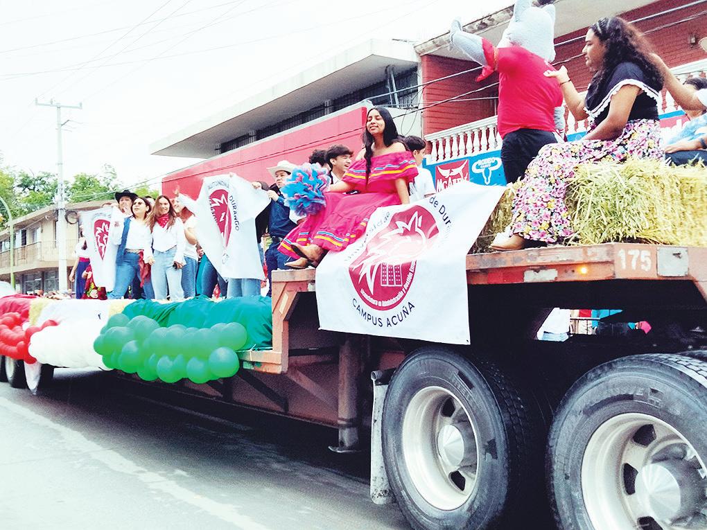 bandas de guerra, los carros alegóricos con las reinas de los planteles educativos, la participación del contingente de la Escuela de Enfermería que sobre la marcha realizó una demostración de las técnicas de primeros auxilios, a ello se sumó la participación del Pen-