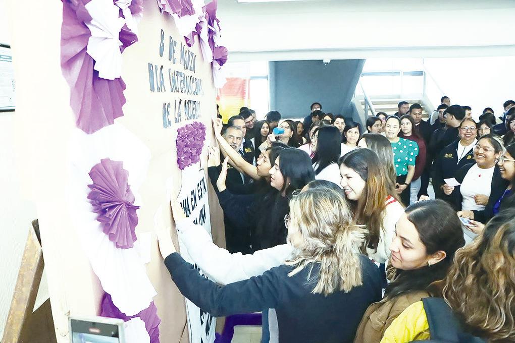 ral, donde escribieron frases alusivas al reconocimiento de los logros, la fortaleza y el empoderamiento de las mujeres. Asimismo, este espacio simbólico busca generar reflexión y visibilizar la importancia de la equidad de género dentro de la sociedad mediante esta dinámica orientada a sensibilizar a la comunidad estudiantil sobre la lucha y el papel fundamental de la mujer en la sociedad.