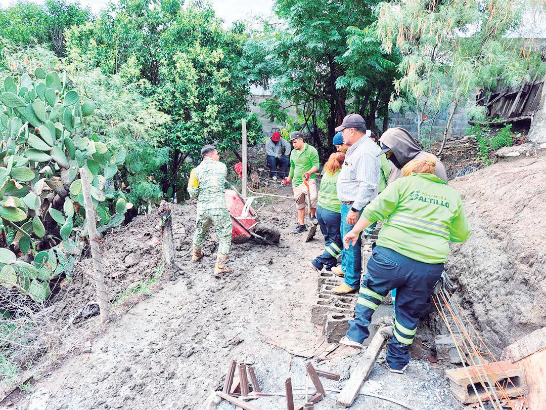 El equipo de Desarrollo Social, en coordinación con el Ejército Mexicano, y la di rección de Servicios Públicos, brindó apoyo a una familia en la colonia Valle Verde, quienes viven en las cercanías del arro yo “La Encantada”.