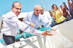 El gobernador Miguel Ángel Riquelme Solís y Román Alberto Cepeda González, alcalde de Torreón, supervisaron el funcionamiento del pozo de agua “La Hacienda”, en esta ciudad.