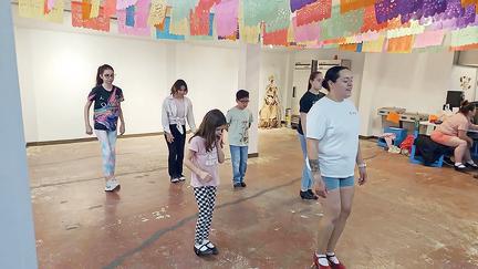 De entrada llamó la atención que en el escenario se montó una especie de caja, como para un show de marionetas adornado por una figura de gran tamaño de una mujer con la cabeza recargada sobre el piso.