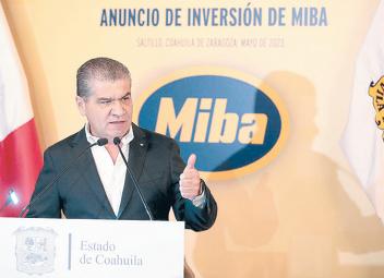 El gobernador Miguel Ángel Riquelme Solís, junto al alcalde José María Morales Padilla, anunció la llegada de la empresa austriaca Miba a Ramos Arizpe, la primera en México, que fabricará autopartes para la industria pesada del ramo, así como turbinas para aerogeneradores eólicos y manufacturas para la agroindustria.