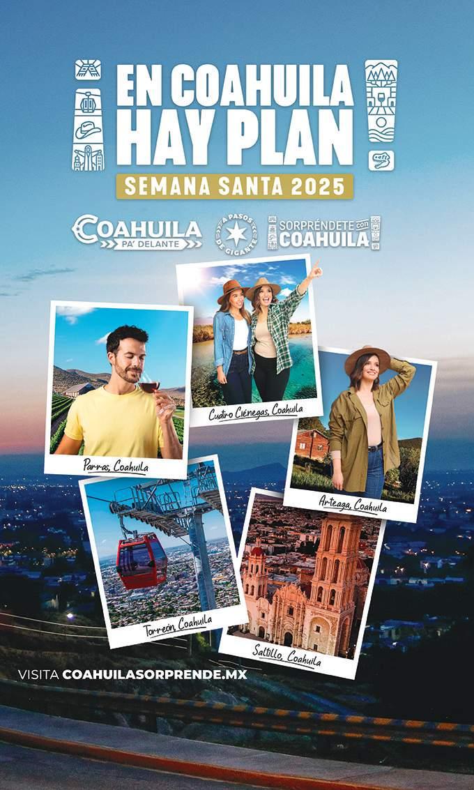 “Invitamos a toda nuestra gente de Coahuila que visite nuestros Pueblos Mágicos, y también invitar a la gente de otros estados en esta Semana Santa a visitar Coahuila porque aquí hay plan”, señaló. Actividades culturales, deportivas, y religiosas para disfrutar en esta Semana Santa En General Cepeda tendrá en el ejido La Rosa el jueves 17 un cuadrangular de béisbol y coronación de la reina; el viernes 18 una cabalgata que saldrá de la cabecera municipal y culminará en el ejido La Rosa, donde por la tarde se realizará el Rodeo Libre, y el sábado 19 en