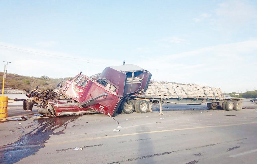 Zócalo-Acuña. Brutal choque por alcance entre dos tráileres se registró la tarde del lunes a la entrada de la ciudad a escasos metros del dispositivo militar, dejando una persona herida, cuantiosos daños materiales y caos vial en la carretera. Hasta el lugar del accidente arribaron diferentes autoridades para tomar conocimiento, además de una ambulancia de la Cruz Roja que se encargó del traslado de Américo Hernández Valdez, de 48 años de edad, chofer responsable que resultó herido, los golpes que presentan, no ponen en peligro la vida. Los hechos se presentan cuando el chofer del tráiler de
