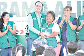 z Manolo Jiménez recordó que a través de la estrategia integral Mejora Coahuila, se entregaron además paquetes alimentarios con arroz, frijol, pastas para sopa, atunes, aceite, alimento lácteo