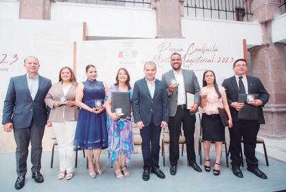 El gobernador Miguel Ángel Riquelme Solís entregó la Presea al Mérito Magisterial 2023 a seis docentes y directivos, quienes por su trabajo fueron reconocidos en sus comunidades educativas. “A nombre del pueblo y del Gobierno de Coahuila, hoy les expresamos el mayor de nuestros reconocimientos, los felicitamos y además les damos nuestra gratitud por todo lo que hacen en la formación de las niñas, niños y jóvenes coahuilenses”, expresó el mandatario estatal. Señaló que es emblemático entregar, en Palacio de Gobierno, una presea a alguien que con gran mérito ha sido parte de nuestro sistema educativo. Riquelme Solís mencionó que hoy Coahuila es un motor de desarrollo para la eco-