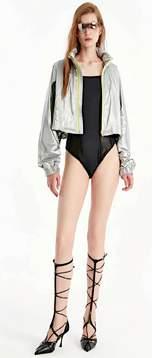 z Unos jeans acampanados. z Rompevientos con bolsas y capucha.