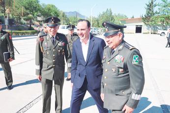 z Al dar la bienvenida al general Vicente López, Manolo Jiménez le expresó su respaldo y compromiso de trabajo conjunto para mantener a Coahuila en orden y en paz.
