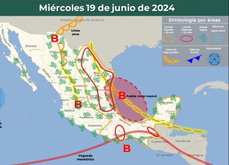 z El Servicio Meteorológico Nacional alertó que más de la mitad del país experimentarán lluvias y fuertes precipitaciones con la formación de este ciclón, que en caso de cobrar más fuerza sería tormenta.