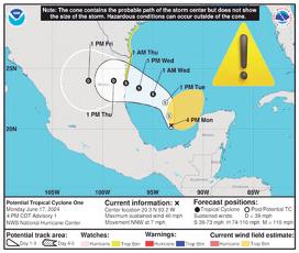 Perderá intensidad a partir del jueves Ya en tierra, el posible ciclón tropical irá perdiendo intensidad y “por la tarde del jueves, se localizará como una depre-