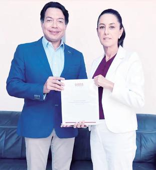 presidente López Obrador en su visita a Durango, junto a la virtual presidenta, Jiménez Sa linas precisó que el tema se va a analizar, pero con el equipo de salud de la virtual Presiden ta, hasta que tome protesta e inicie su Gobierno. “Hay diálogo, hay apertura muy propositiva y lo que acor damos es empezar a dialogar para construir el mejor mode lo para la salud de los coahui lenses, y veremos en un par de meses cuál va a ser este modelo”, declaró el Gobernador. z El Gobernador reiteró que esperan a que rinda protesta.