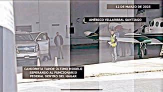 z El funcionario desciende del avión y aborda la camioneta dentro del mismo hangar. La camioneta que lo traslada es escoltada por otra camioneta blanca, en la que viajan tres guardaespaldas.