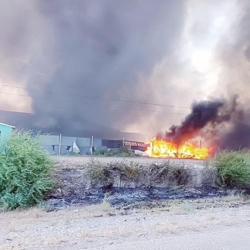 Siniestro z Alrededor de la 1:00 de la tarde se empezó a ver la enorme humareda por el incendio en la Acuña-Piedras Negras, en el kilómetro 80+500 z Dio inicio el fuego en el albergue y se propagó hacia la bodega que contenía infinidad de materiales reciclables z Mala visibilidad por la enorme columna de humo obligó a transportistas y automovilistas a detener su marcha