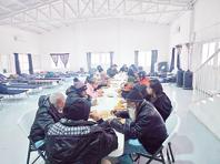 z Personal del centro comunitario proporciona alimentación y cuidados a las personas que se encuentran en el albergue temporal.