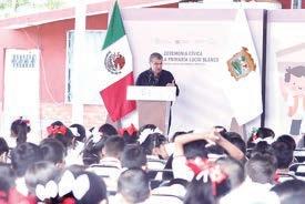 El gobernador Miguel Ángel Riquelme Solís asistió a la escuela primaria Lucio Blanco, en esta ciudad, en donde se llevó a cabo la ceremonia cívica de Honores a la Bandera, mismos que estuvieron a cargo de la escolta y banda de guerra del 33 Batallón de Infantería. En su mensaje, el mandatario estatal se dijo gustoso de estar en este centro escolar, que tiene más de 50 años de servicio, para saludar a los niños, y mencionó que mucha gente que se ha encontrado en el camino ha pasado por estas aulas, tal es el caso de Miguel Mery Ayup, magistrado presidente del Tribunal Su-
