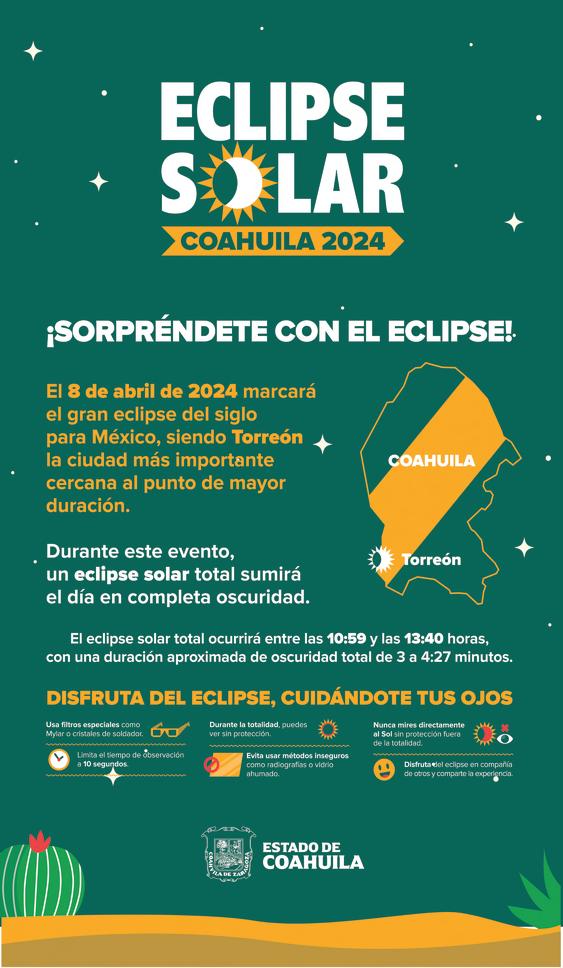 en la Región Acuña-Jiménez, explicó que la Secretaría de Educación del estado puso a la disposición unos lentes es peciales para los alumnos, los cuales han sido entregados a las instituciones educativas con anticipación. Resaltó que los padres de familia deberán firmar una carta responsiva para enviar a sus hijos a clases durante este día, ya que de no ser así, no podrán asistir los alumnos debido al riesgo que puede