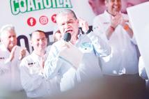 Al grito de “Vamos a ganar”, centenares de gargantas se unieron para expresar su respaldo a los candidatos de la Alianza Ciudadana por la Se- guridad, Miguel Ángel Riquelme Solís, Emilio de Hoyos y Sonia Villarreal, quienes realizaron la presentación de sus propuestas en el evento masivo que se llevó a cabo en el