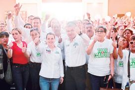 Con presencia y diálogo por todos los rincones de Coahuila, con priístas, simpatizantes y miembros de la sociedad civil en general, es como Miguel Riquelme Solís y María Bárbara Cepeda realizan su campaña pidiendo el voto que los lleve el próximo 2 de junio al Senado de la República por la Coalición Fuerza y Corazón por México (PRI-PAN-PRD) En trabajo coordinado con las mujeres y hombres que trabajan en la estructura priísta, la más fuerte y organizada del país, llevan un mensaje claro y contundente de lo que quieren hacer por el bien de Coahuila al llegar al Senado de la República. En diferentes encuentros que tuvieron este lunes desde Torreón con las bases priístas que les demuestran su con-