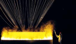 La icónica torre parecía guardar el mayor secreto de esta ceremonia, el de un enmascarado con la antorcha olímpica que siguió el desfile por los tejados de París, cruzando el Sena en tirolina e hilando los distintos temas de una espectacular retransmisión que empezó con el exfutbolista Zidane cediendo la antorcha a unos niños.