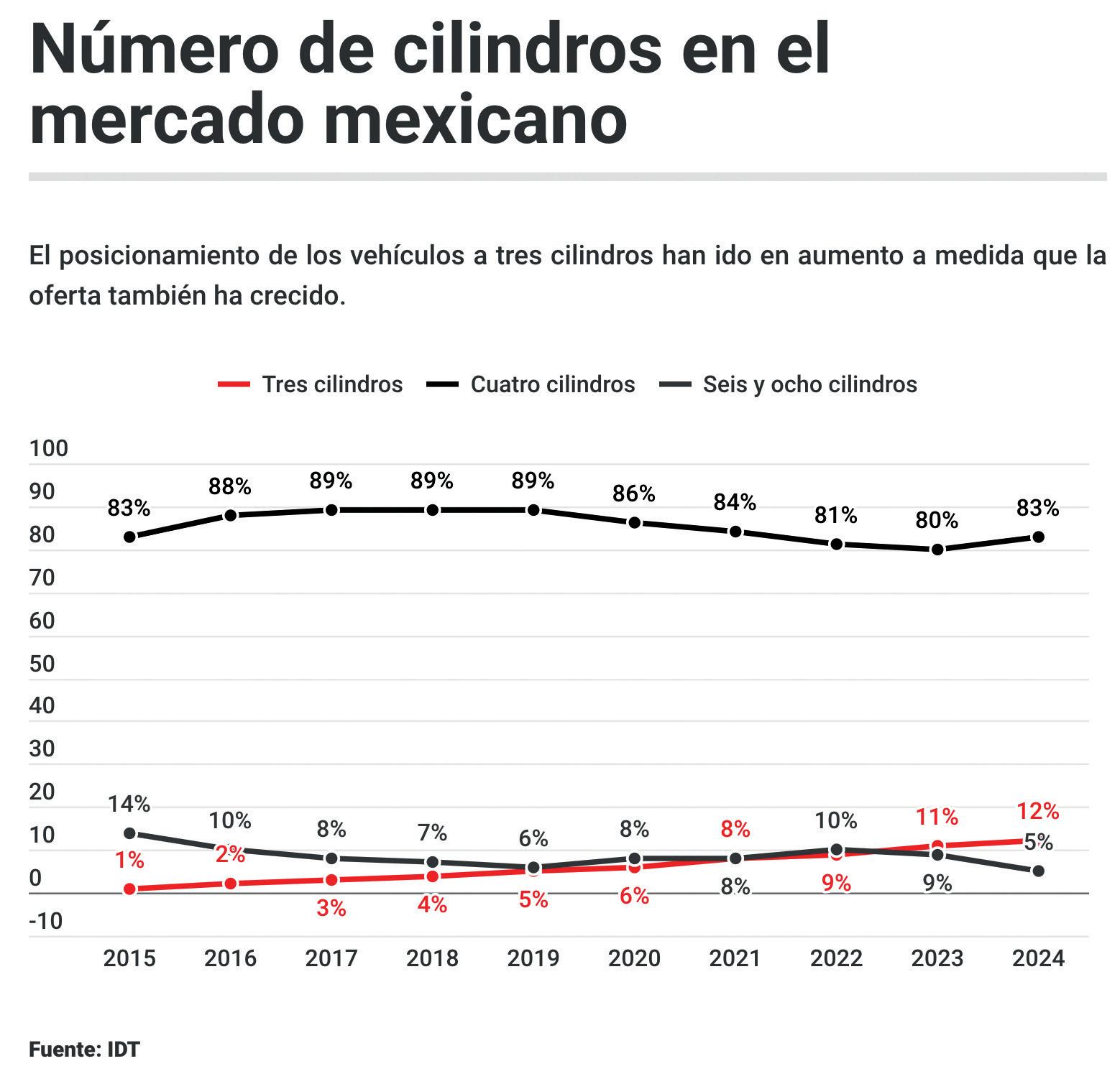 Menos partes, menos costos Además del rendimiento, otro factor que ha impulsado su adopción es la economía. Su menor tamaño implica menos partes móviles, lo que se traduce en menores costos de reparación y mantenimiento. Esto ha sido un atractivo importante para consumidores que buscan no solo un menor gasto de gasolina, sino también de posventa. “Los motores de tres cilindros llevan menos partes: menos bujías, menos cables, menos pistones, menos bielas, menos cosas en general. Entonces, pues la reparación tiende a ser más económica y lo del turbocargador que muchísimos de ellos llevan turbocargador, sería la única cosa, digamos, que podría ser diferente al momento de repararlo”, sostiene Evaristo García, CEO de IDF. Para las armadoras, el cam-