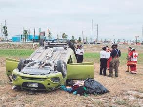z Édgar Flores es el conductor del Chevrolet Spark modelo 2014 que volcó en libramiento Pérez Treviño .