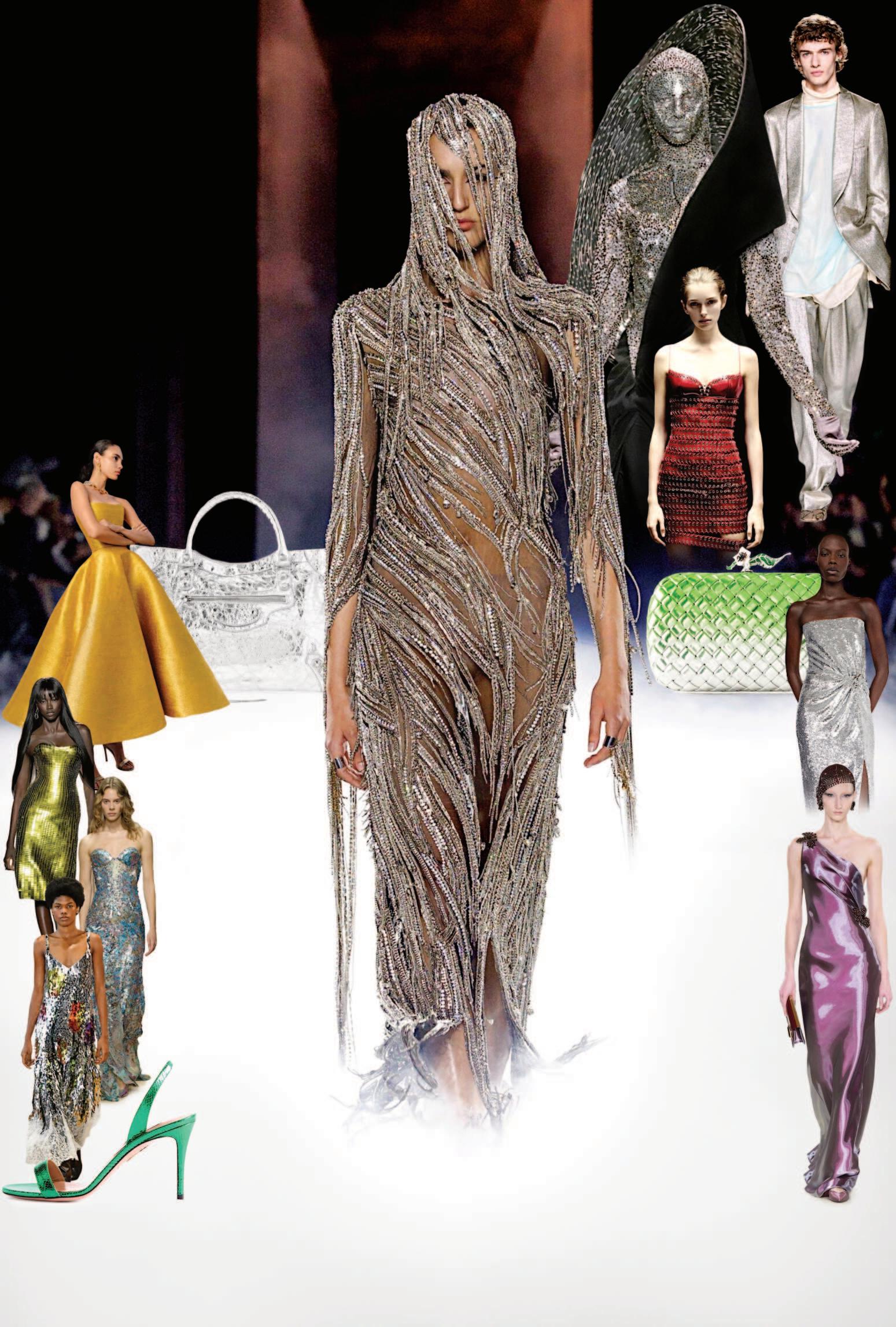 Existen piezas de sastrería firmadas por Prada o Miu Miu, Carolina Herrera u Oscar de la Renta, que se suavizan con una ausencia de accesorios, zapatos planos y bolsas austeras. Un pantalón plateado de Alexander McQueen se combina con una sencilla camiseta blanca y tenis, las faldas mini o midi de Dolce & Gabbana se acompañan con camisas tipo masculino y mocasines; así como las sandalias de Aquazzura con espejos, han brillado como nunca en estas vacaciones veraniegas. “No hay duda de que quien se viste de metálico está evocando fuerza, lujo y presencia, usando una especie de armadura actual, sexy, audaz y lista para conquistar”, añade Mayte quien menciona a estrellas como Dakota Johnson y Dua Lipa como fanáticas de este tema. Existe también un claro retorno a los años 80, con looks estructurados gracias a grandes hombreras y sensuales vestidos pegados al cuerpo que recuerdan a Cher. Así, vestirse con brillos, es hoy mucho más que una moda pasajera, es una actitud de estilo que combina el pasado con el futuro, logrando looks impactantes que deslumbran a todos.