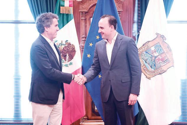 delante y a pasos de gigante”, destacó el gobernador. Manolo Jiménez informó al representante de la Unión Europea las fortalezas con las que cuenta Coahuila en temas como desarrollo económico,