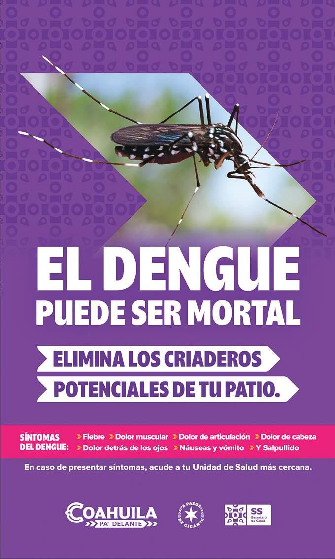 a este padecimiento. El trabajo que se ha realizado en materia de prevención ha evitado que se presenten casos de dengue en esta frontera. Las acciones que se realizan por parte de las autoridades van de la mano con las acciones que los propios ciudadanos deben de implementar al interior de sus viviendas, como lo es la limpieza de los patios, la descacharrización y el evitar almacenar agua en recipientes, toda vez que este es el ambiente propicio para la proliferación del mosco.