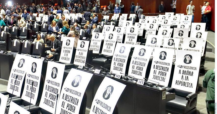 z Diputados de la oposición se ausentaron ayer y en sus curules colocaron frases de protesta.