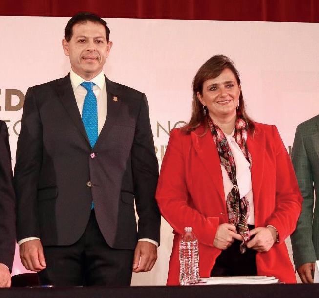 z La ministra Ríos Farjat estuvo ayer en el Unidad Saltillo de la UAdeC, donde fue recibida por el rector Octavio Pimentel.