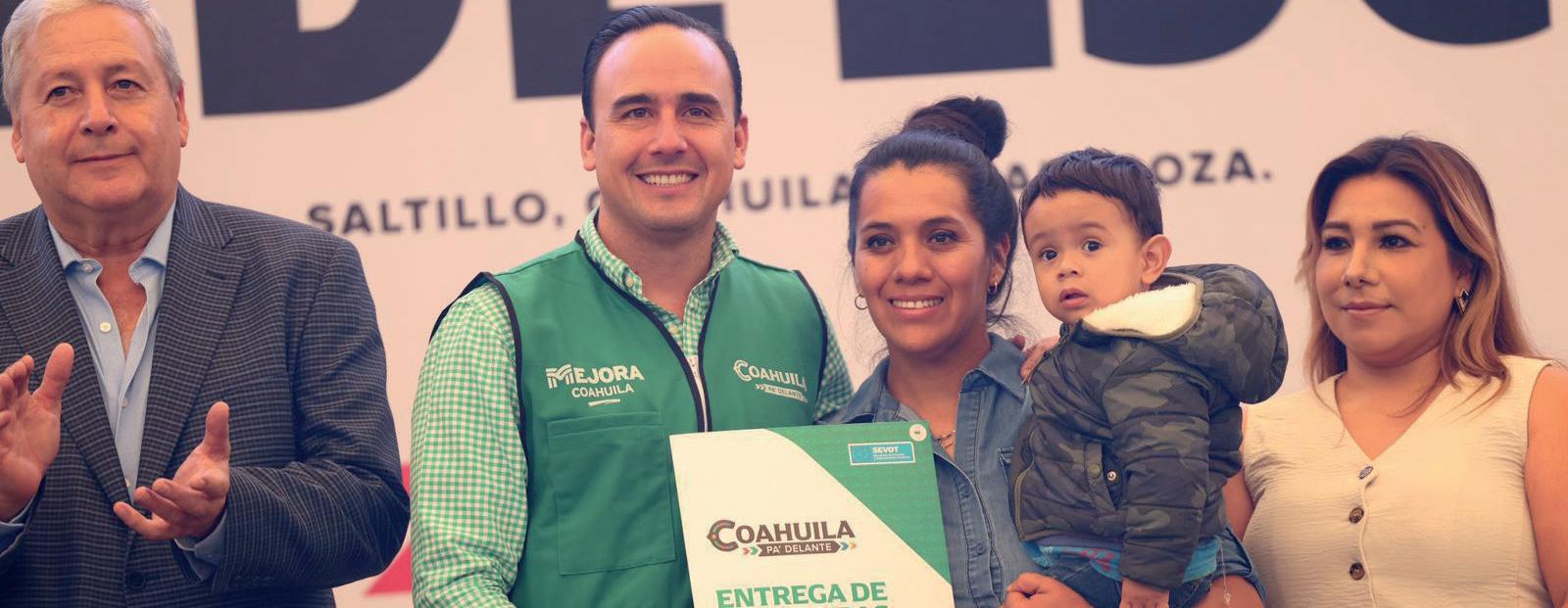 Benefician a más de mil 800 familias Encabeza Manolo entrega de escrituras en todo el estado Desde Saltillo y de manera simultánea en todas las regiones de la entidad, Manolo Jiménez Salinas presidió la ceremonia en la que se entregaron más de mil 800 escrituras a familias coahuilenses, con el objetivo de brindarles certeza sobre su patrimonio.